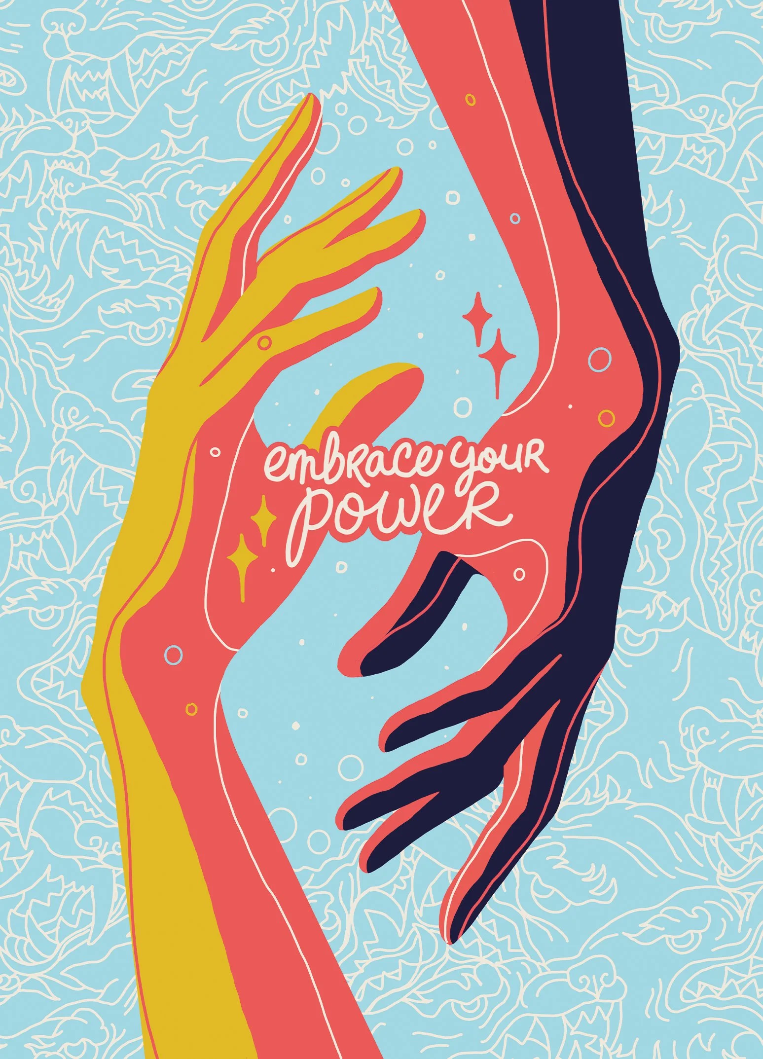 A specific color palette is chosen and employees across all departments were encouraged to create and submit artwork.